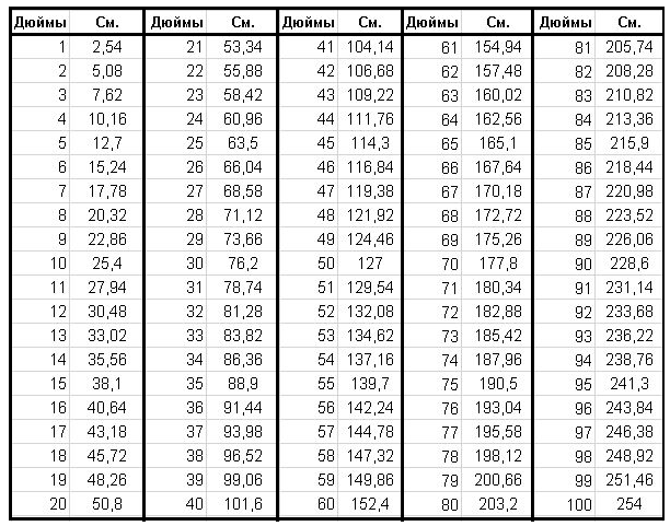 Դյույմը վերածվախ սանտիմետրի