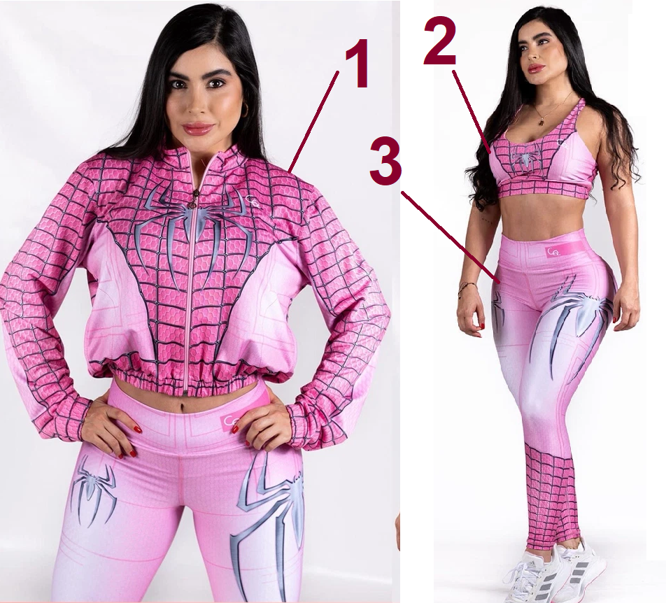 | 02A-6. QUEENS SPORT բրենդի կանացի նորաձև շքեղ կոլումբիա-բրազիլական ոճի սպորտային հավաքածու Spider girl, 3 կտորից՝ պատրաստված բարձրորակ թանկարժեք միկրոֆիբրայից |