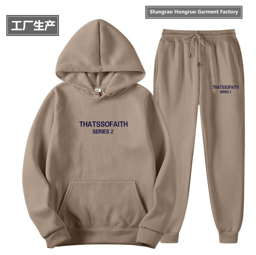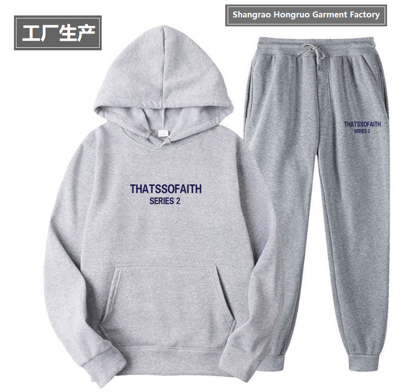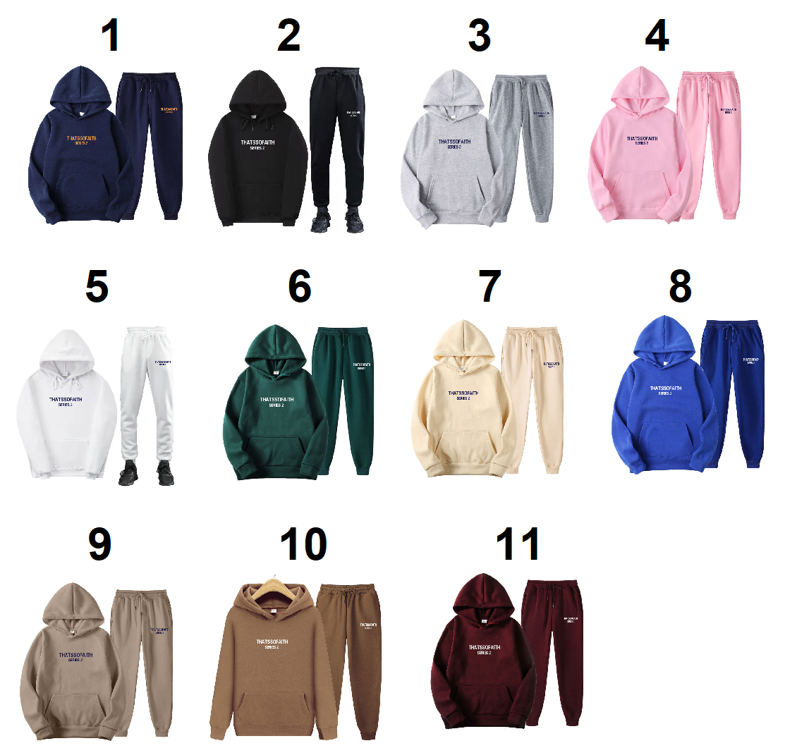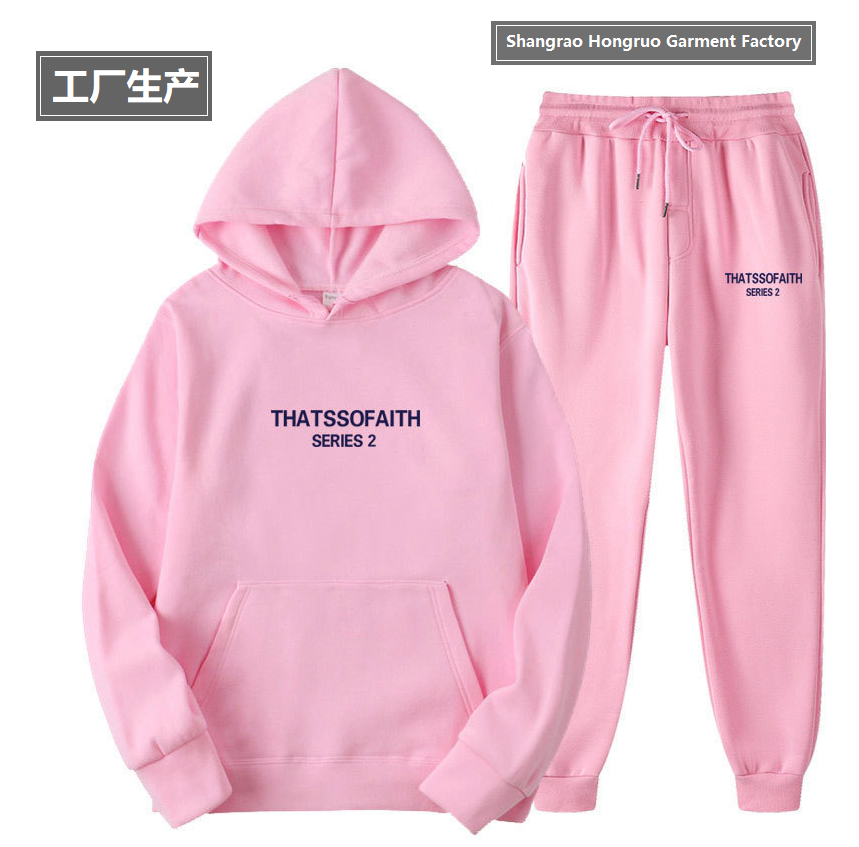 | 23JE. Կանացի և տղամարդու աշնանային-ձմեռային սպորտային տաք հուդի գլխարկով և տաբատով, THATSSOFAITH մակագրությամբ: 11 գույն |
