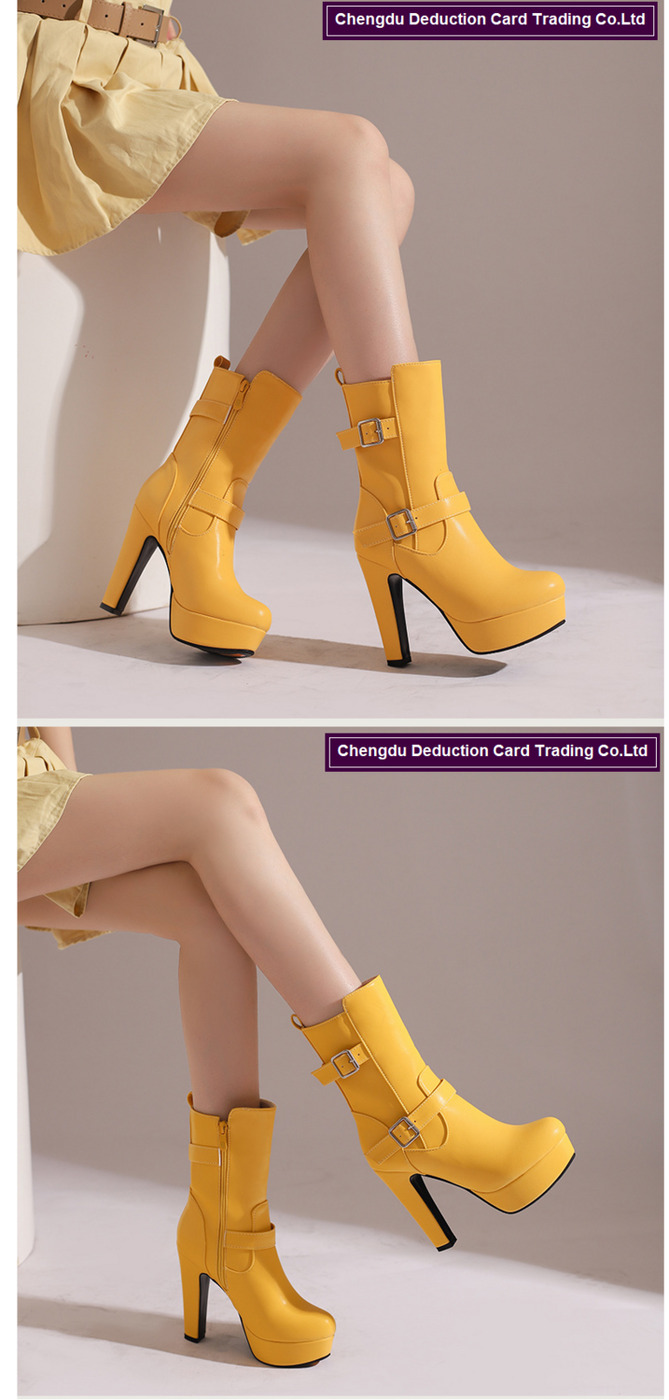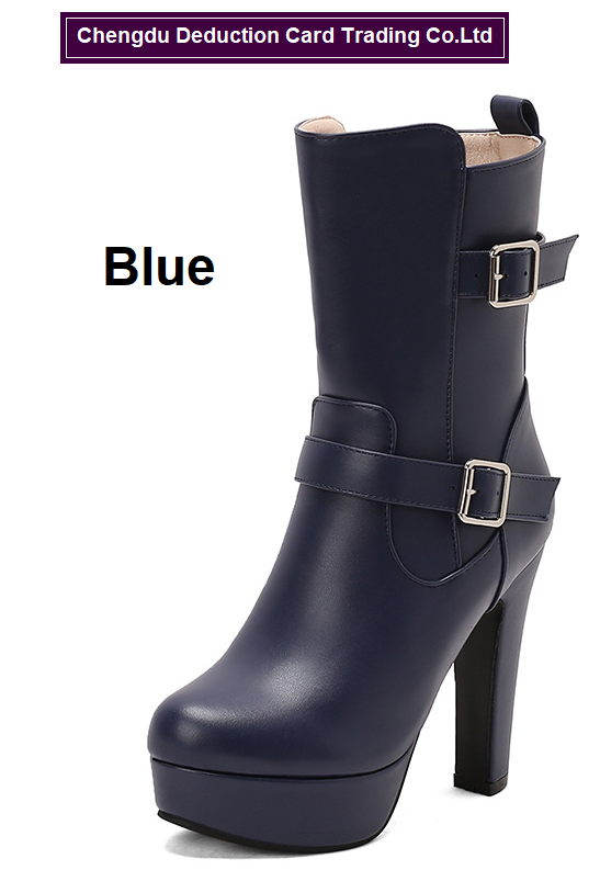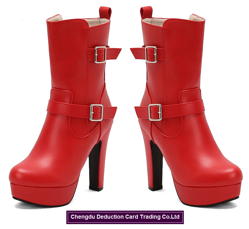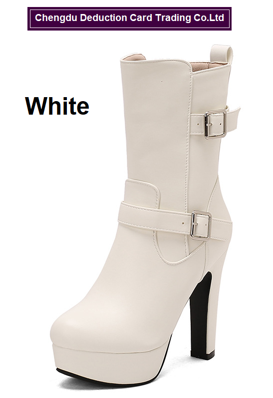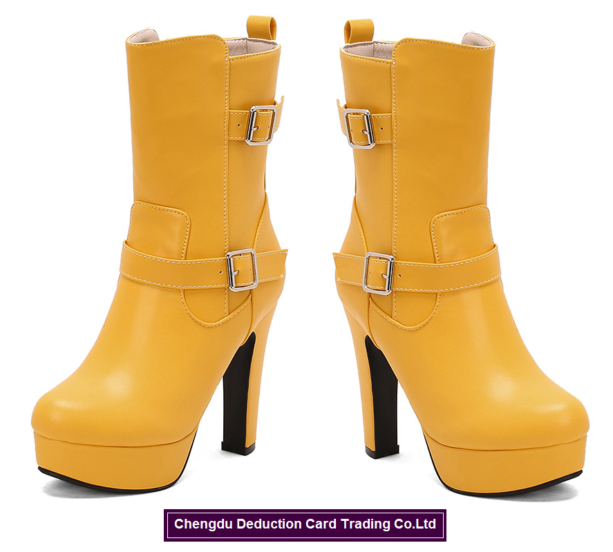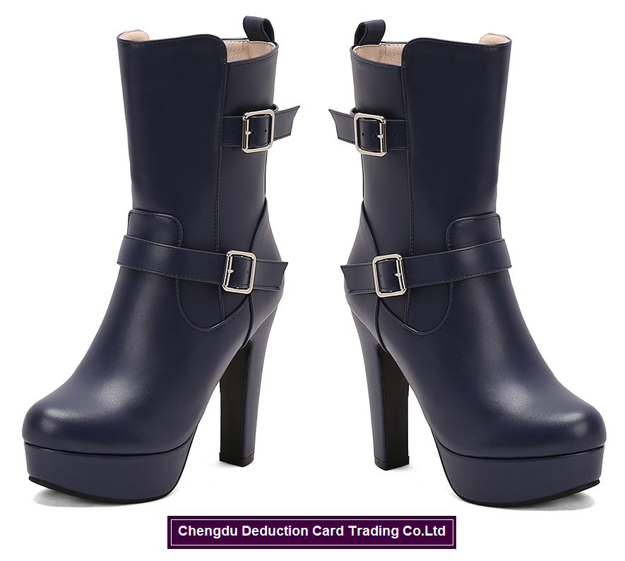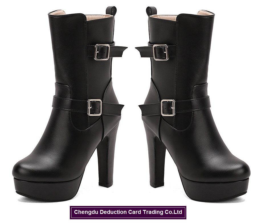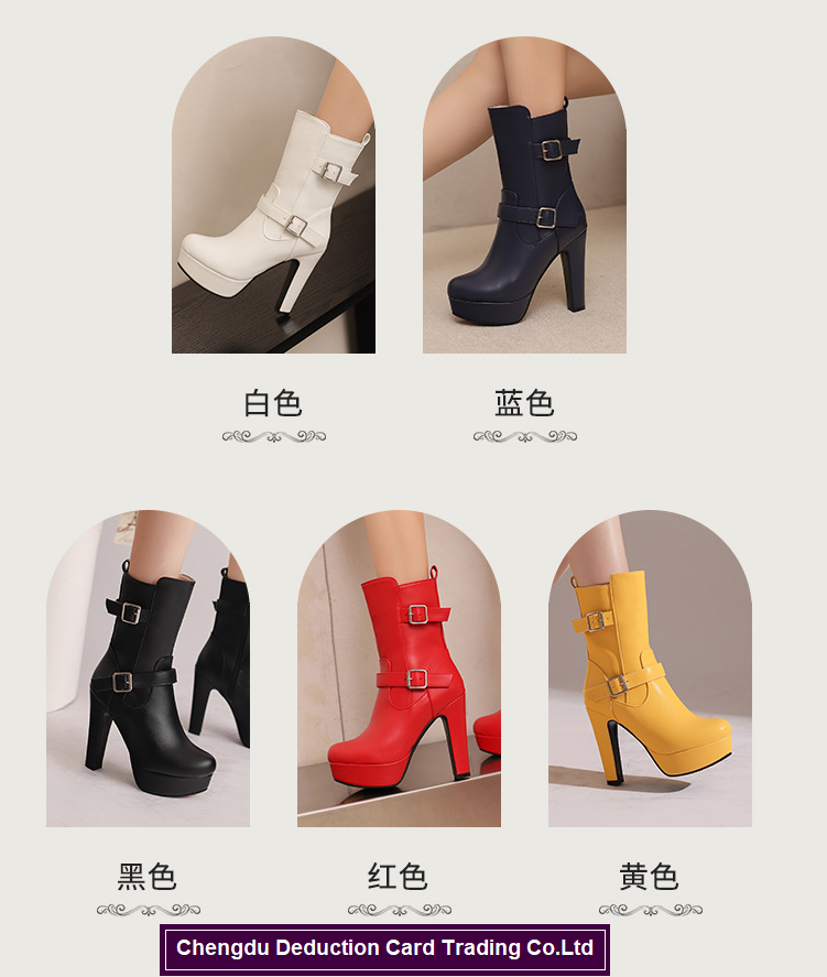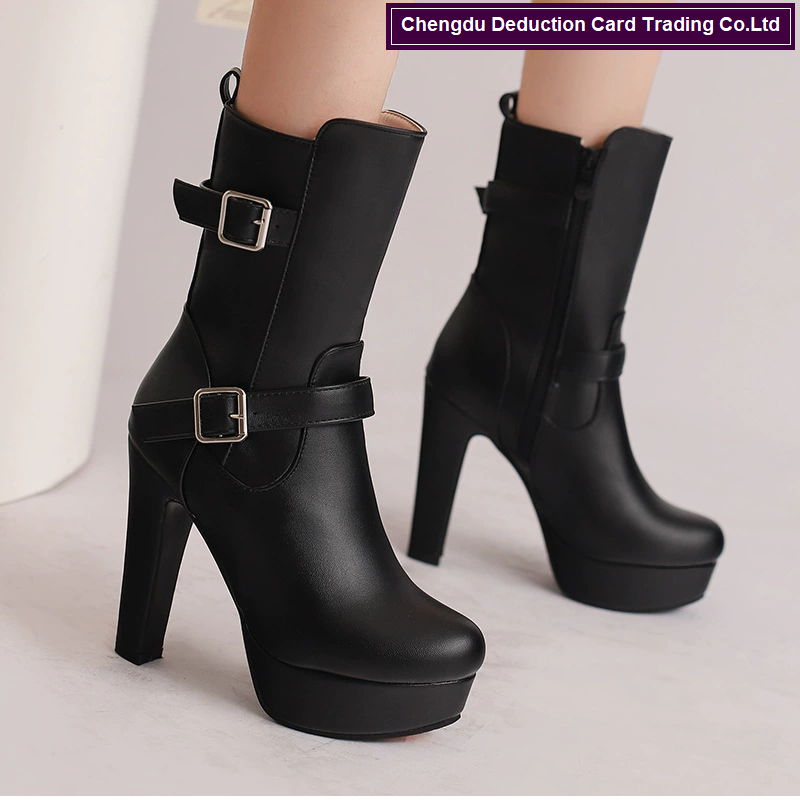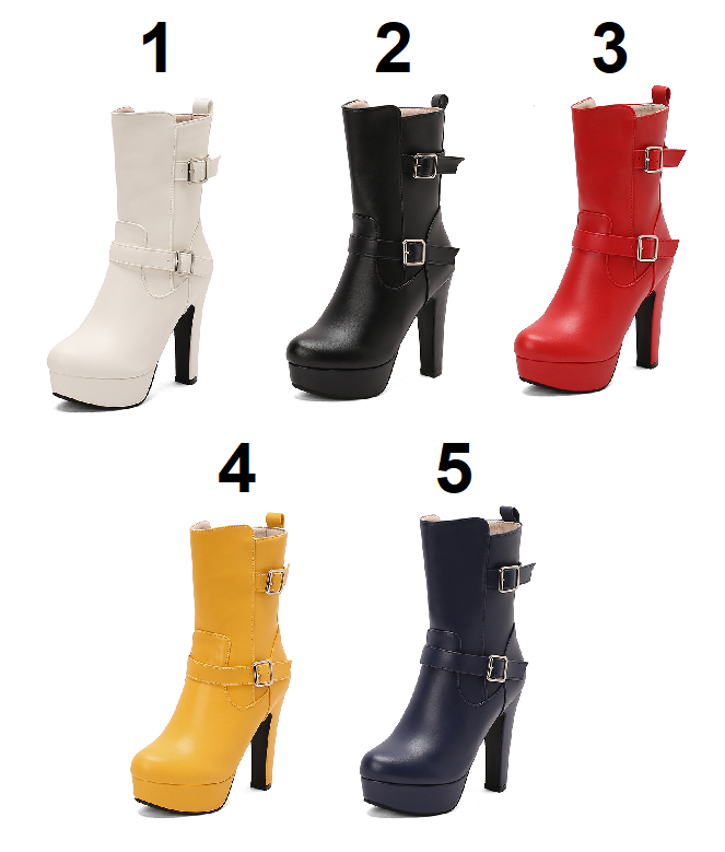 | 32JE. Կանացի նորաձև աշնանային և ձմեռային կոշիկներ՝ գոտու ճարմանդով, միջին երկարության՝ հաստ ներբաններով և հաստ կրունկներով՝ արևմտյան ոճով: 5 գույն |