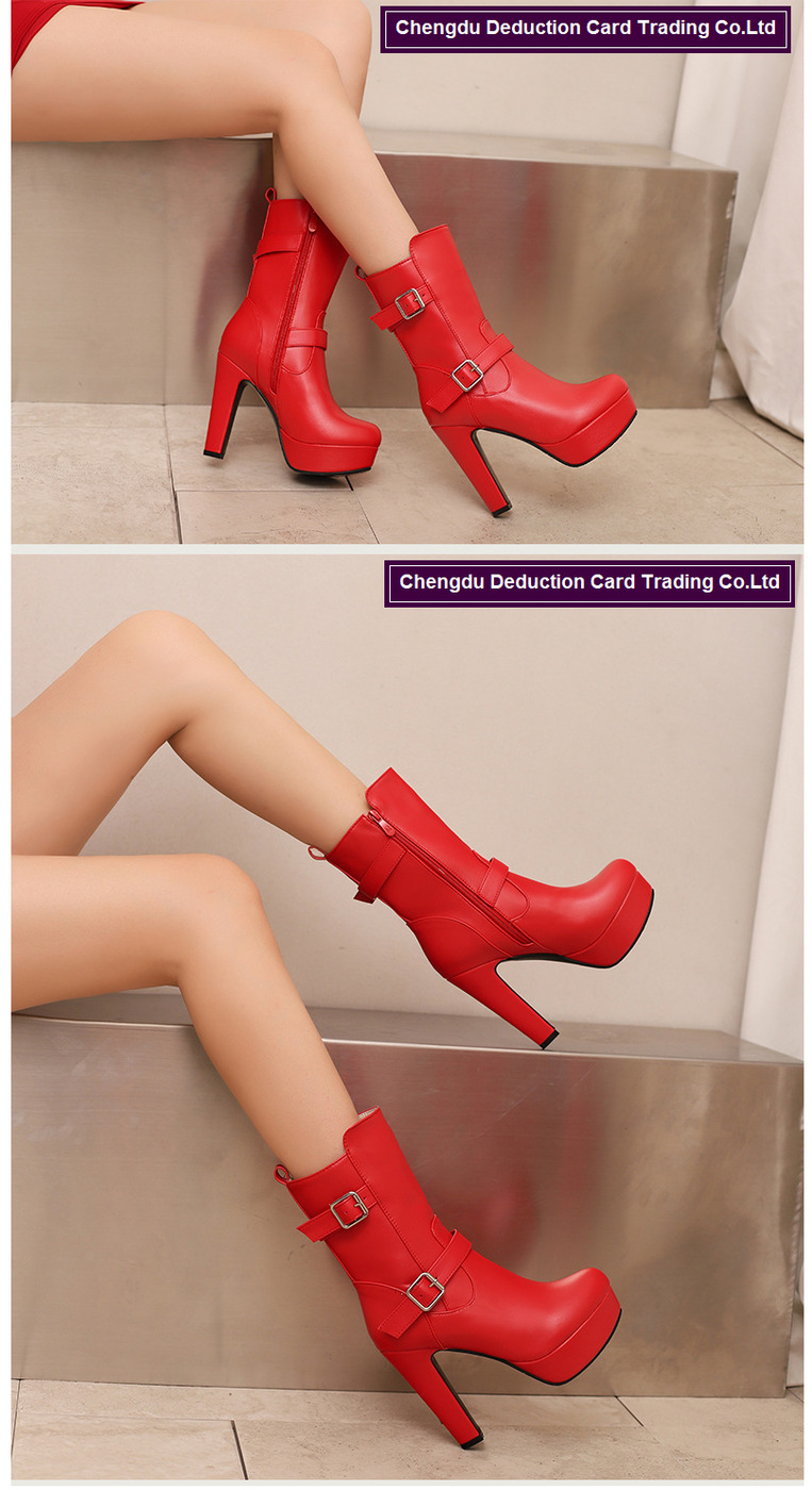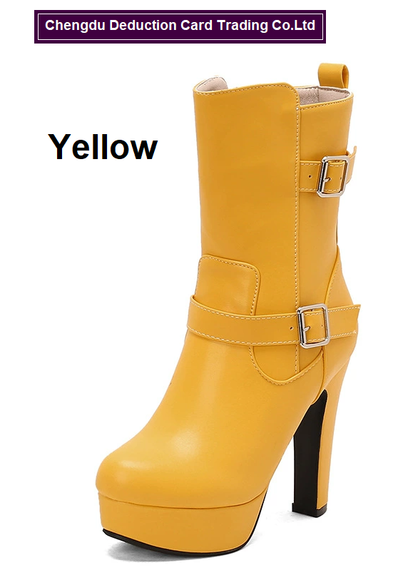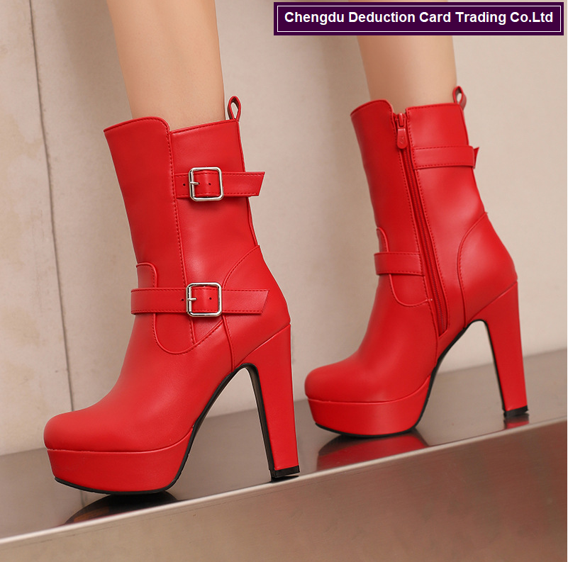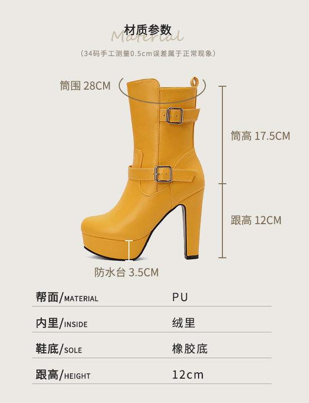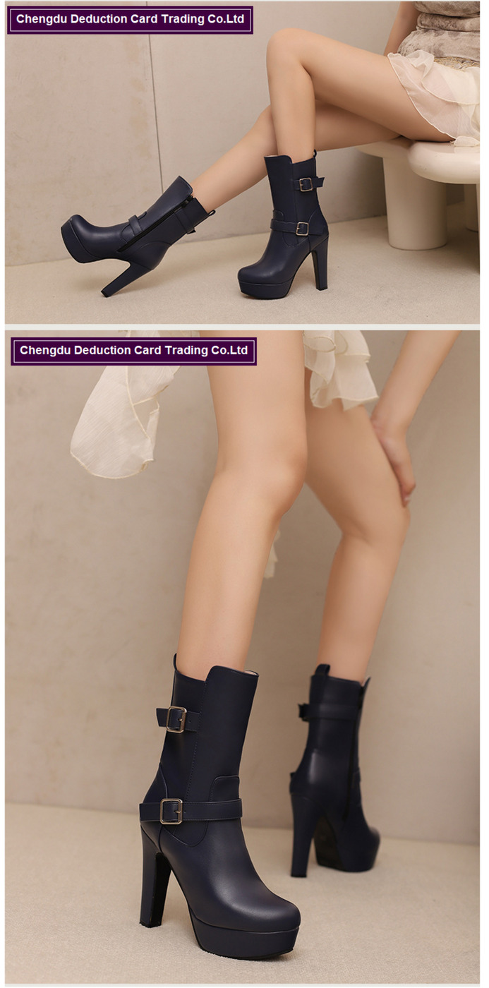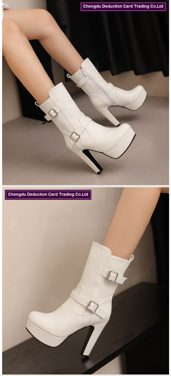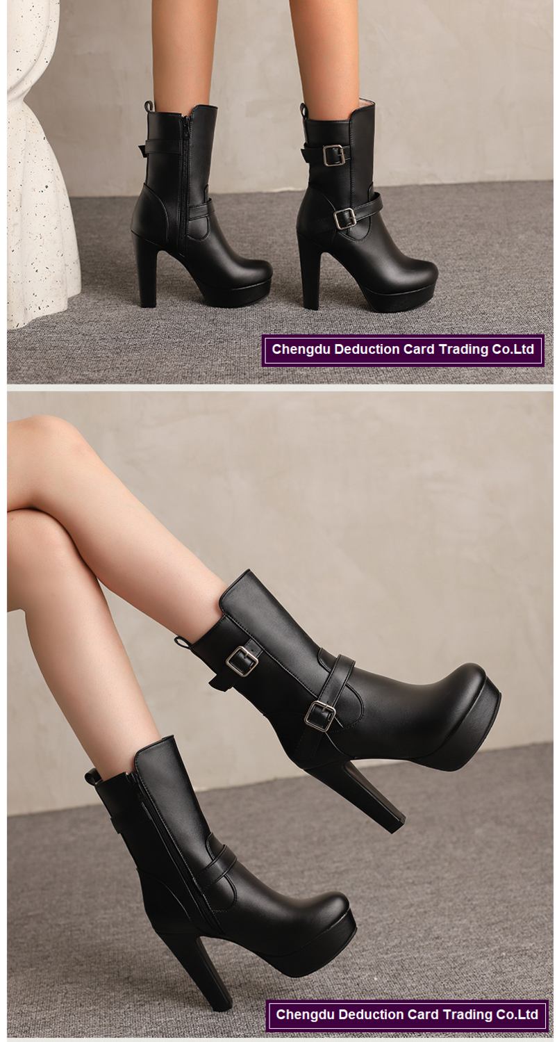 | 32JE. Կանացի նորաձև աշնանային և ձմեռային կոշիկներ՝ գոտու ճարմանդով, միջին երկարության՝ հաստ ներբաններով և հաստ կրունկներով՝ արևմտյան ոճով: 5 գույն |