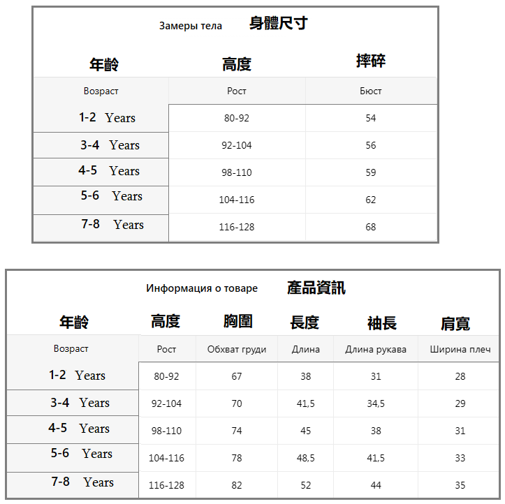 Չափերը: 1-2 3-4 4-5 5-6 7-8 տարեկանների