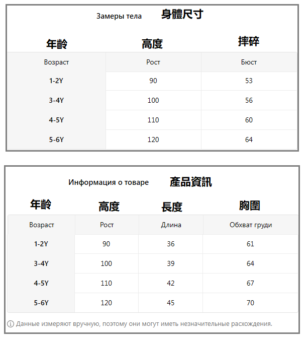 Չափերը: 1-2 3-4 4-5 5-6 տարեկանների