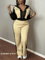 | 6F. Կանացի աշնանային-ձմեռային նորաձև սպորտային հավաքածու՝ կոստյումը գլխարկով և տաբատով՝ գունագեղ պալիտրայով: Գույնը սև-բեժ |