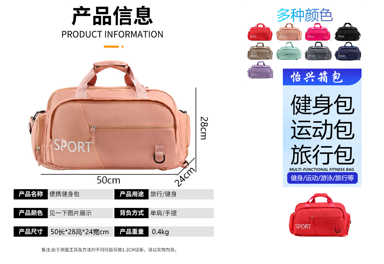 | 8JE. Նորույթ 2025: Ֆիթնեսի սպորտային պայուսակներ կանաց և տղամարդկանց համար, մեծ տարողության, չոր և խոնավ կոշիկների ու հագուստի համար: 9 գույն |