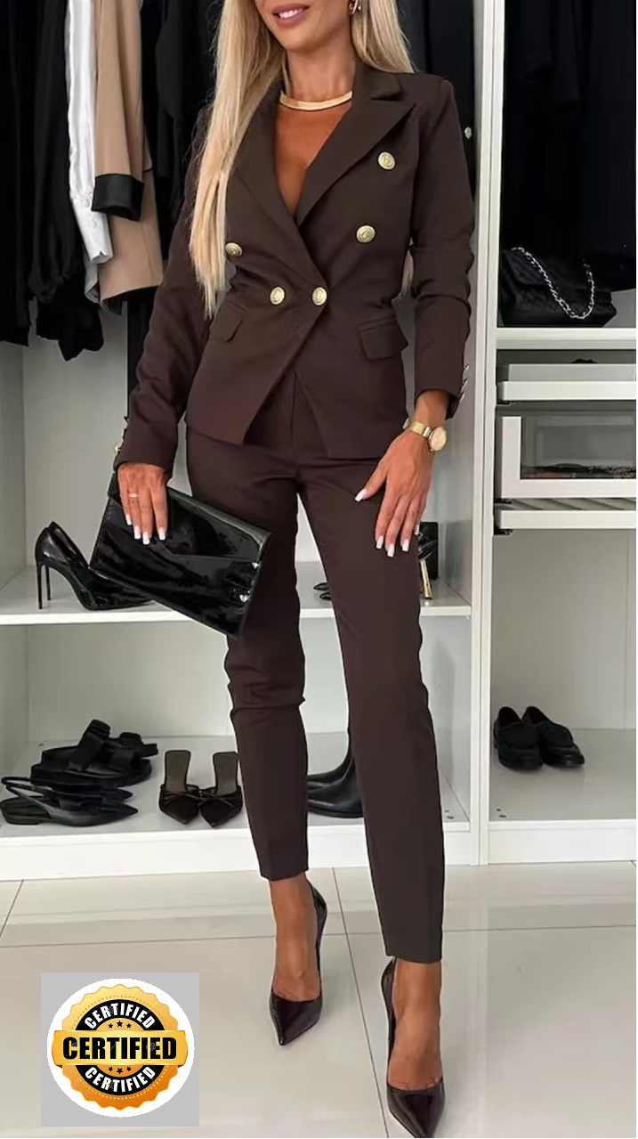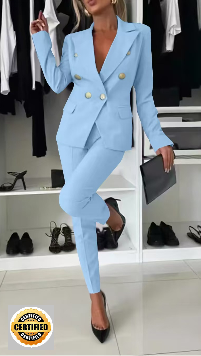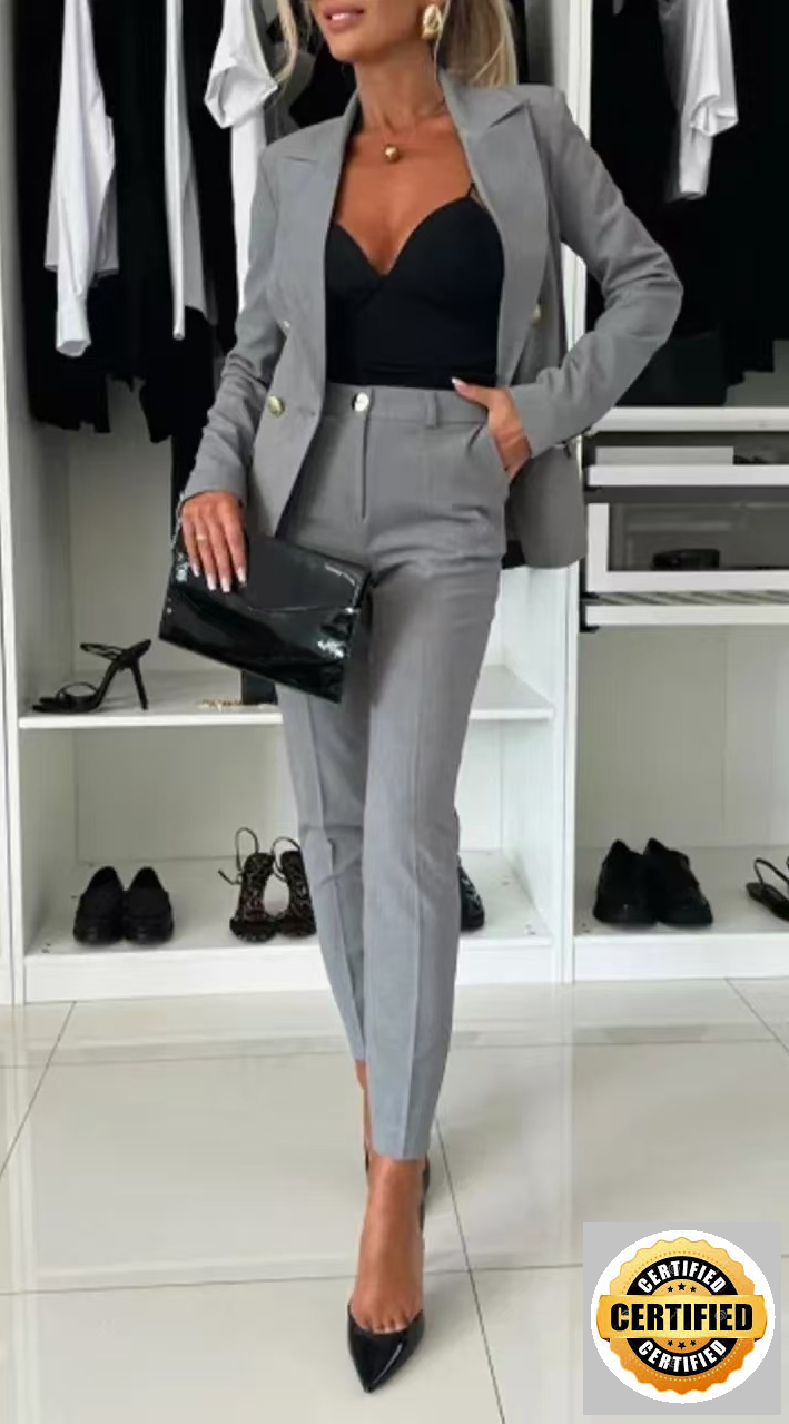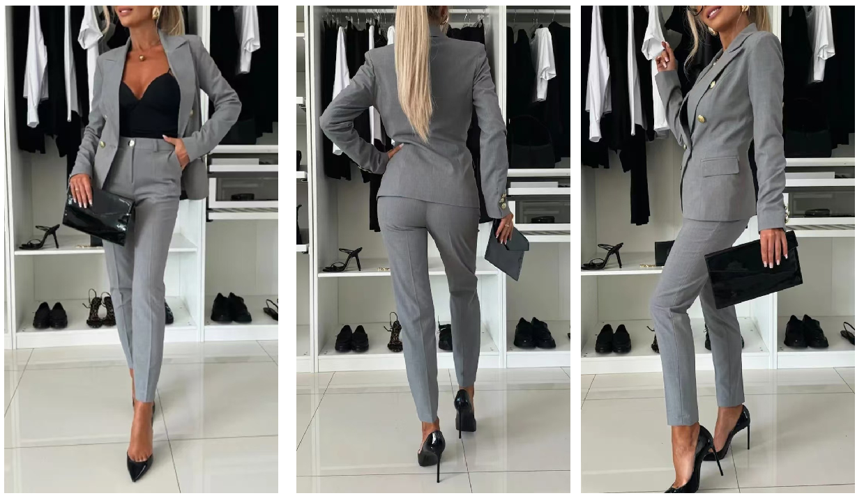 Այս գործնական կոստյումը տաբատով կատարյալ ընտրություն է ոճային և ինքնավստահ կանանց համար: Կոստյումն ունի հարմարավետ գրպաններ: Դուք հիանալի տեսք կունենաք ցանկացած միջոցառման ժամանակ՝ լինի դա գործնական հանդիպում, պաշտոնական միջոցառում, թե աշխատանք։